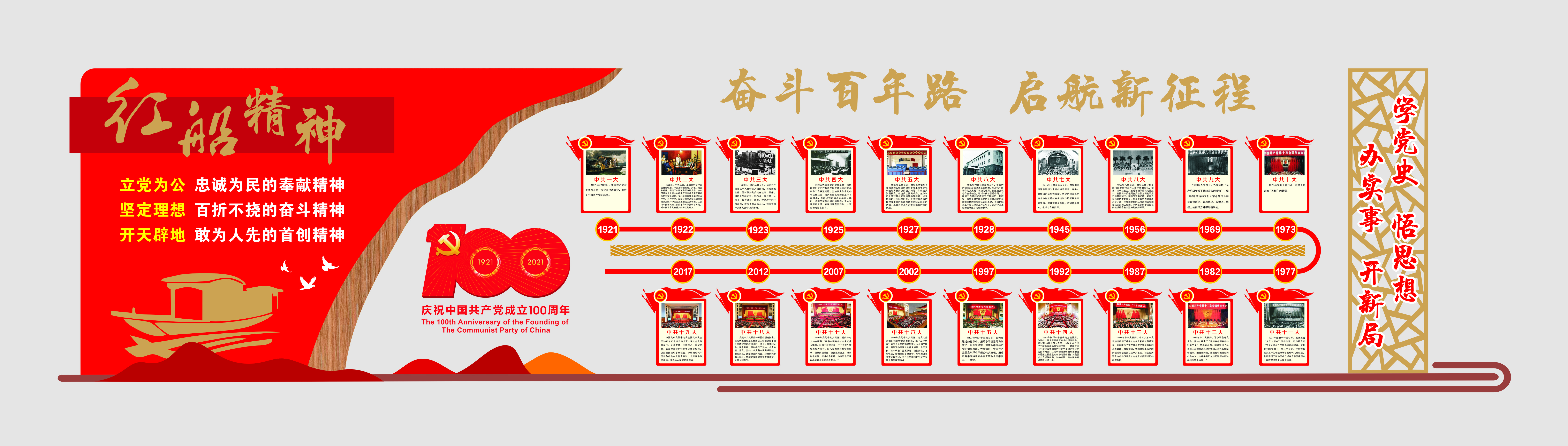 在建黨100周年之際,為深入學習貫徹習近平總書記在黨史學習教育動員大會上的重要講話精神,引導廣大黨員干部在回望歷史中感悟初心使命、在歷史縱深中明確坐標方位、在鑒往知來中強化使命擔當。近日,黃山建工集團黨總支精心制作黨史教育展板,在辦公樓大廳內營造濃厚學習氛圍。