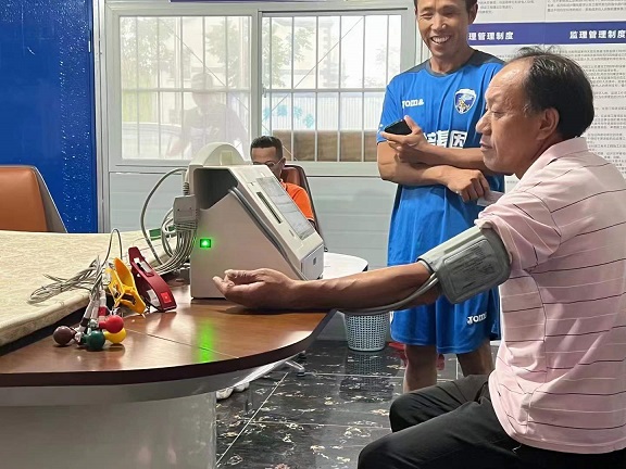 2022年7月18日上午7時,旌德碧桂園生活區內,人聲鼎沸、歡聲笑語,工人們每個人臉上都洋溢著幸福的笑容,他們排著隊,有組織、有秩序地參加項目部組織的“關愛健康、全員體檢”活動。此次體檢活動對每位工人的心率、血壓等檢測項目做了細致正確的系統錄入,并自動形成體檢記錄報告,做好一人一檔制度。活動的開展讓項目部所有人員對自己的身體狀況有個自身認識和了解,尤其是在炎熱酷暑的高溫天氣,做到提前預判和應對防范措施,助力安全生產。