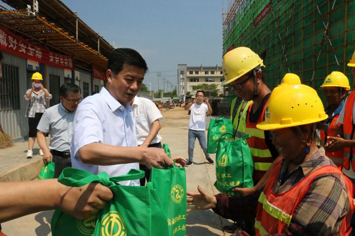 近日,黃山市天氣持續(xù)高溫酷熱,驕陽似火,黃山博盛消防裝備有限公司新廠區(qū)1-2#車間及研發(fā)中心工人仍堅守在施工一線,頂烈日,搶工期。7月26日上午,屯溪區(qū)委書記吳旭光、區(qū)委副書記、區(qū)長楊林,區(qū)人大常委會主任朱學軍,區(qū)政協(xié)主席袁震宇,區(qū)政協(xié)副主席杜祖紅等一行深入工地現(xiàn)場,開展“送清涼進工地”活動,看望慰問項目部一線職工。