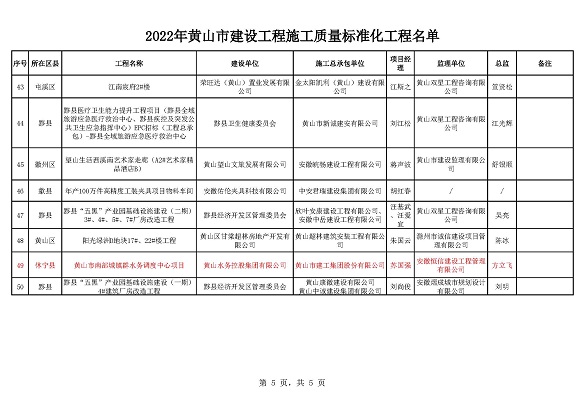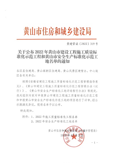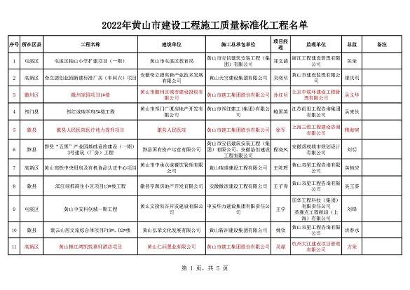 黃山市建工集團股份有限公司承建的徽州家園項目、歙縣人民醫(yī)院醫(yī)療能力提升項目、黃山橫江灣凱悅酒店項目、高鐵黟縣東站站前廣場及附屬配套工程、黃山市南部城鎮(zhèn)群水務調度中心項目、黃山北海路公交綜合大樓工程榮獲2022年施工質量標準化工程和安全生產(chǎn)標準化工地的殊榮。