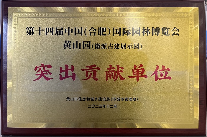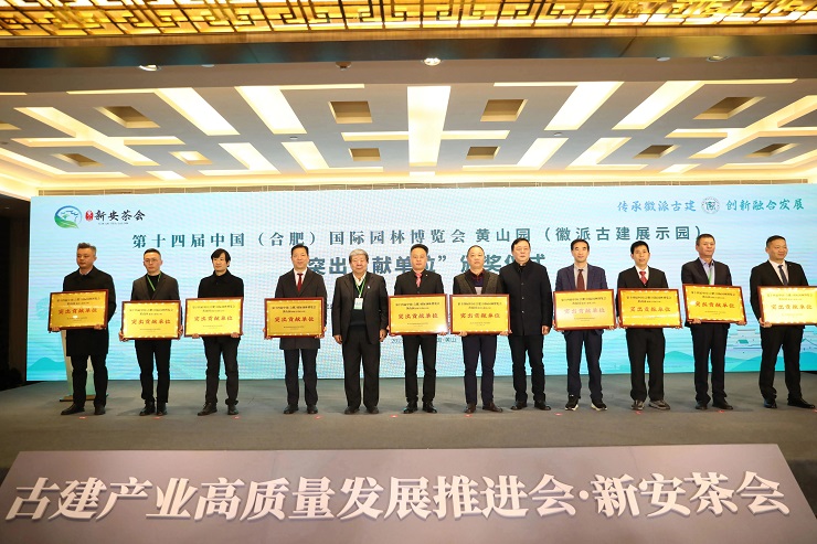 12月18日下午,中國(黃山)第三屆徽派古建產業發展大會古建產業高質量發展推進會·新安茶會舉行。推進會上頒發了第十四屆中國(合肥)國際園林博覽會黃山園(徽派古建展示園)“突出貢獻單位”獎項,作為黃山園項目參建單位之一的黃山建工集團再獲殊榮。