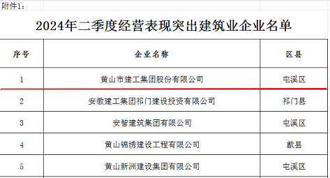 黃山建工集團被評為我市二季度經營表現突出建筑業企業