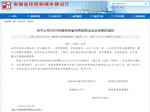 近日,黃山建工集團接連獲得兩項省級權威認可:安徽省住房和城鄉(xiāng)建設廳公布了《2023年度安徽省優(yōu)秀建筑業(yè)企業(yè)名單》,黃山建工集團有限公司憑借卓越的綜合實力、突出的行業(yè)貢獻和良好的社會口碑再次成功入選。同時又榮獲安徽省市政工程協(xié)會認定的"2024年度優(yōu)秀市政企業(yè)"稱號。這一系列榮譽的取得,充分展現(xiàn)了企業(yè)在建筑工程和市政工程領域的綜合實力和行業(yè)領先地位。