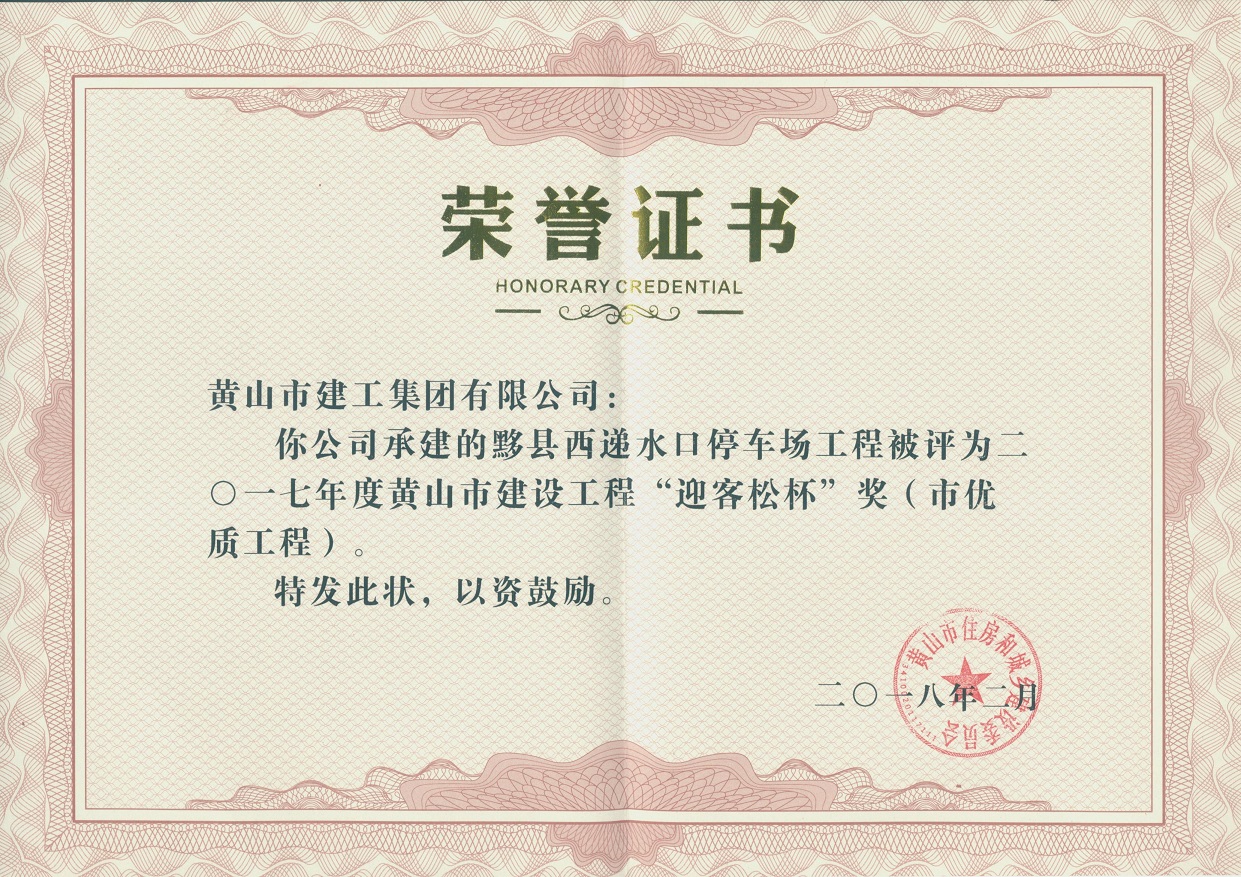2018年度黃山市建設工程優質工程獎