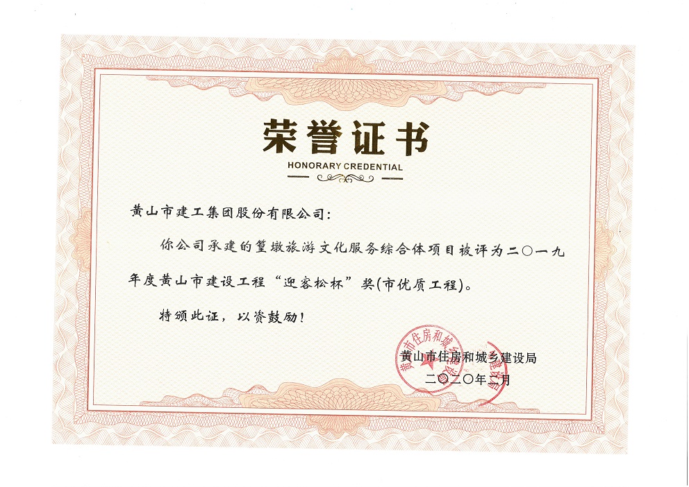 2020年度黃山市建設工程優(yōu)質(zhì)工程獎